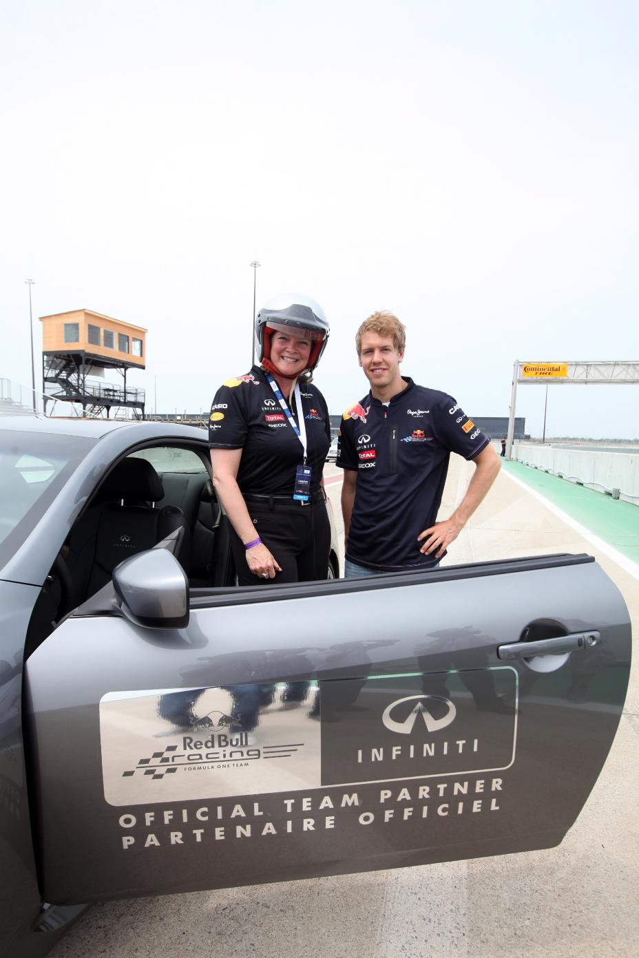 FORMULA ONE WORLD CHAMPION SEBASTIAN VETTEL PUTS WENDY DURWARD AND INFINITI IPL TO THE TEST ON THE TRACK