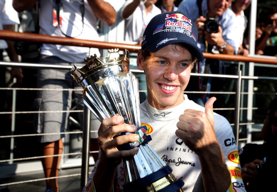 Italian Grand Prix 2011 - 11th September 2011 - Sunday Race - Sebastian Vettel, Red Bull Racing RB7, celebrates his race win.